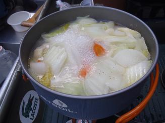 この日の飯は塩鍋。