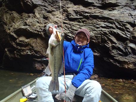 フラップテールマウス君が、久しぶりにバスの口を捕らえてくれました。笑