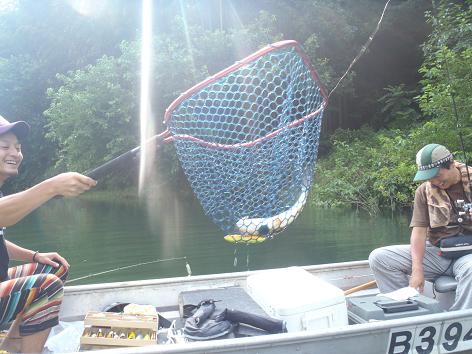 浮き上がった瞬間、店長が準備していたネットにIN!